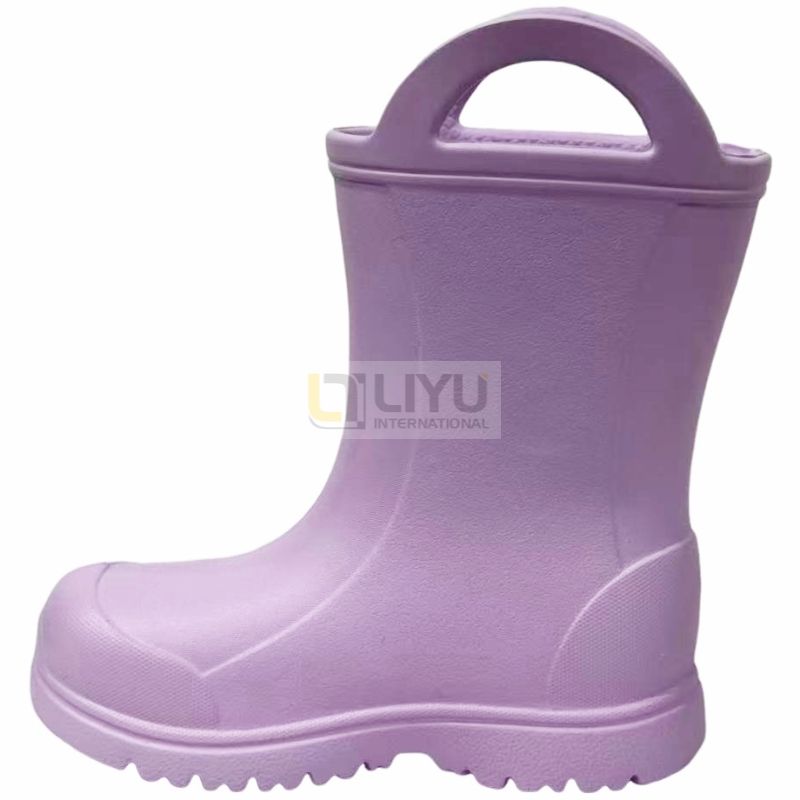 These EVA foam children's rain boots are specially designed for children's rainy - day outings. They are made of recyclable and environmentally friendly materials, which are not only kind to the environment but also make parents feel at ease when letting their children wear them. The rain boots are designed with handles, making it convenient for children to put on and take off. Moreover, they are lighter than ordinary rain boots, so children can wear them without any burden and enjoy the fun of rainy days to the fullest.